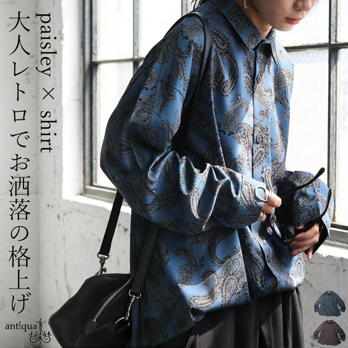 存在感あるペイズリー柄が印象的なシャツ(ブラウス)です。