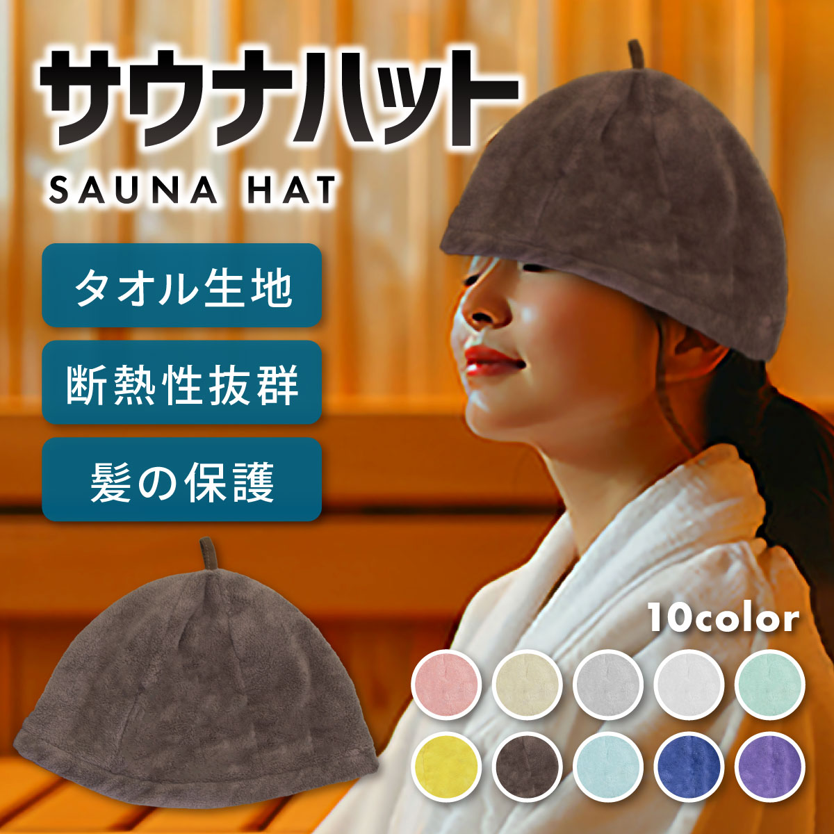 タオル生地のサウナハットです。