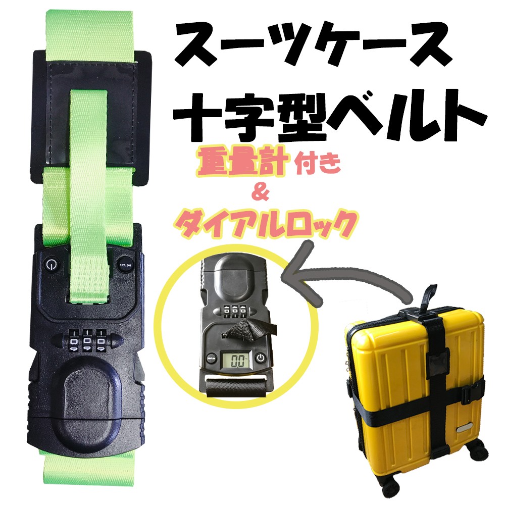 スーツケースベルト 十字 重量計付き ダイアルロック 3桁ロック 5色から選べる カラフルデザイン 荷物固定 旅行 海外 海外旅行 空港 手荷物 ベルト 用品 便利