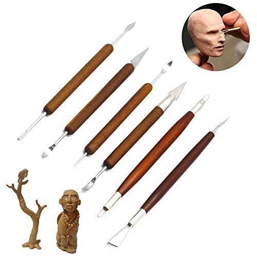 【木製のハンドル】様々な彫刻形状セットなので、柔軟性のある制作ができます。木製のハンドルで使いやすく、職人の雰囲気が感じられて、初心者から上級者まで様々な需要に対応できる陶器粘土彫刻です。初心者から上級者まで様々な需要に対応でき、陶芸 粘土用彫刻刀6本セットです。