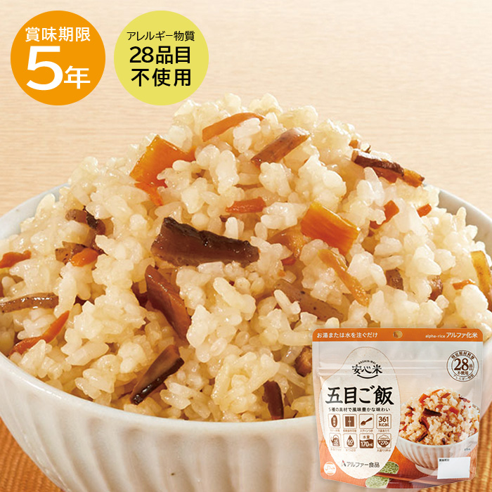 【レビュー特典あり】安心米 五目ご飯 非常食 保存食 アルファー食品 ご飯 5年保存 防災 キャンプ アウトドア 避難グッズ 備蓄 災害対策 災害 地震 震災