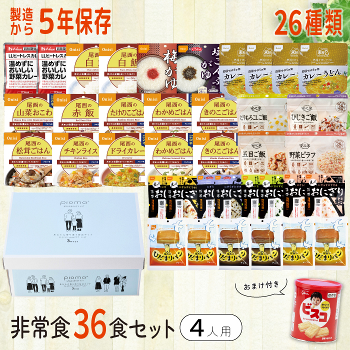 【レビュー特典あり】非常食 36食セット ボックス付き おまけ付き 37食 5年保存 保存食 送料無料 アルファ米 長期保存 4人用3日分 おやつ 非常食セット