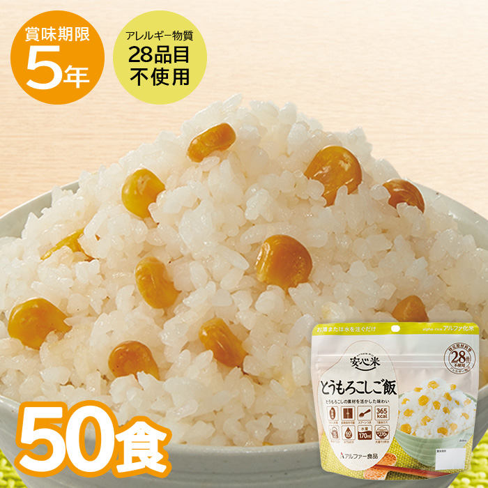 【レビュー特典】安心米 とうもろこしご飯 50食 非常食 保存食 アルファー食品 ご飯 5年保存 防災 キャンプ アウトドア 防災用品 備蓄 災害対策 災害 地震 震災