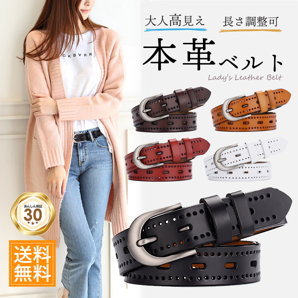 レディース ベルト ゴルフ レザー ダークブラウン キャメル ブラック レッド ホワイト 大きい 人気 パンチング かわいい おしゃれ 上品 長さ調節 長さ 調節