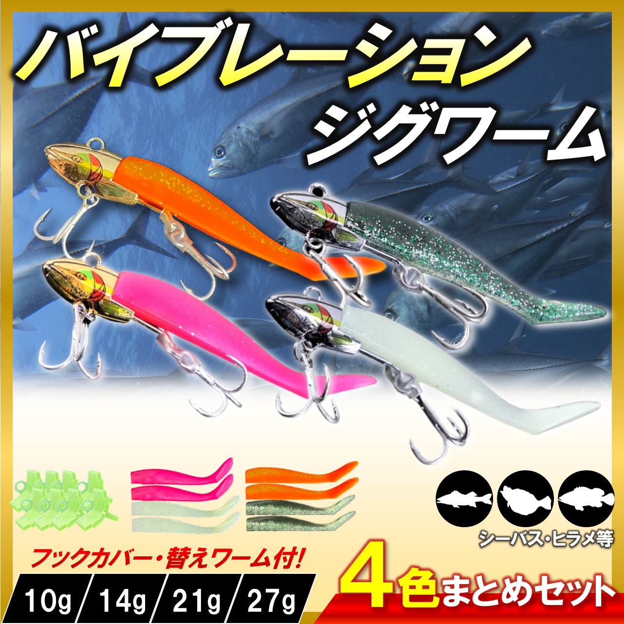 バイブレーションジグヘッド ワーム 4色セット シーバス シャッド ルアー コアマン代用 VJ シーバス ヒラメ