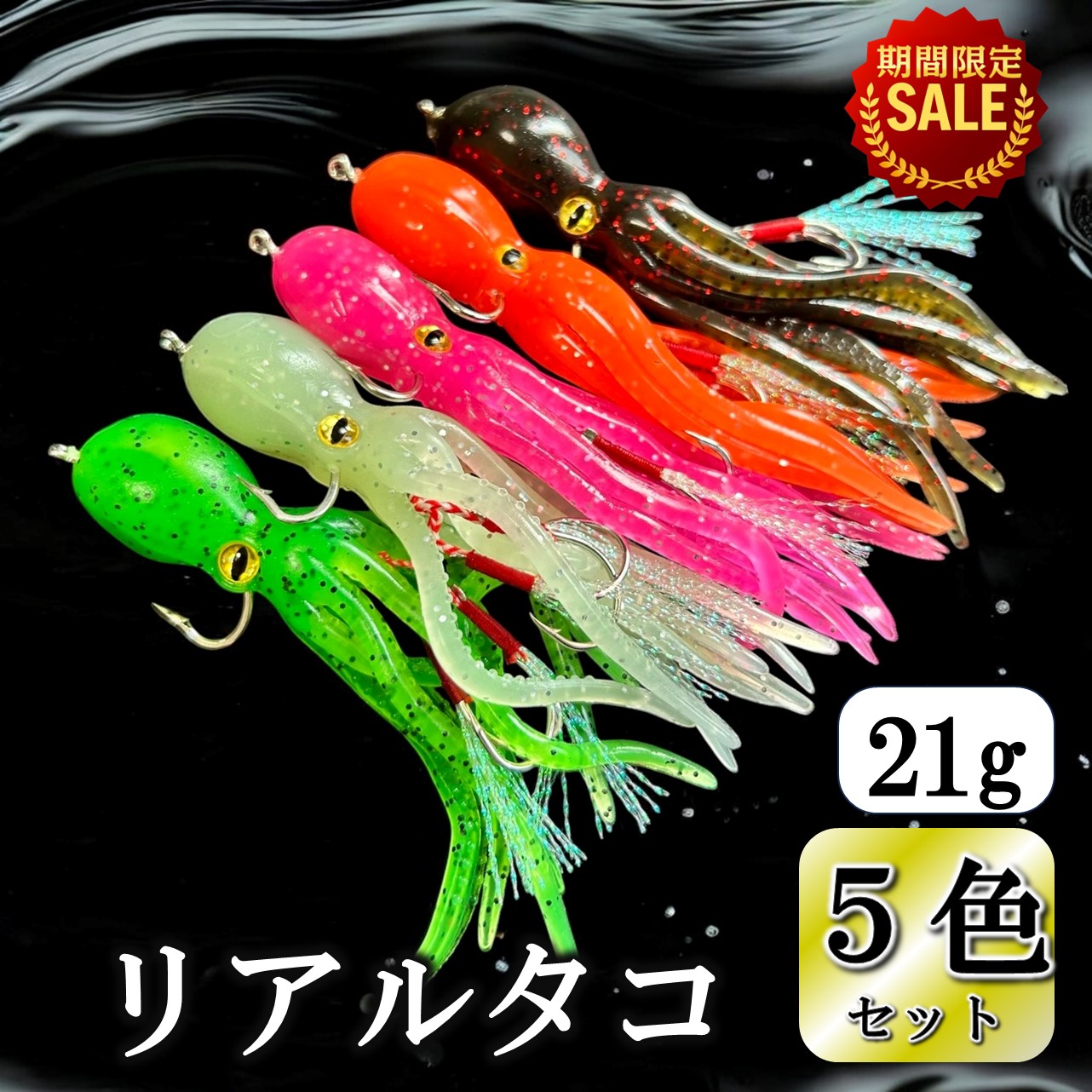 リアルタコベイト 5個 セット 青物 21g 夜光 3連フック タチウオ ヤマシタ代用 yamashita ショア タイラバ 鯛 船