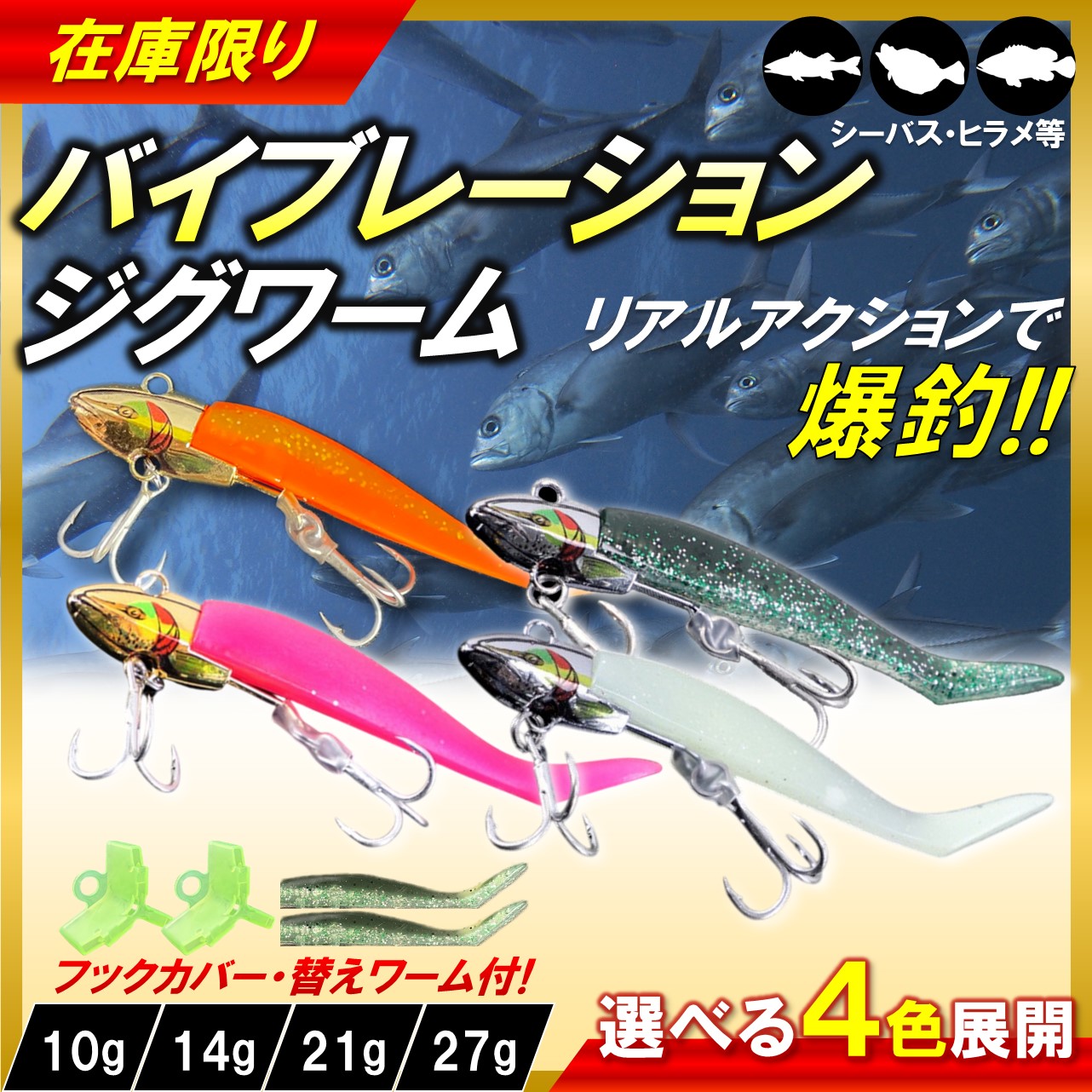 ◆商品名: バイブレーションジグヘッドワーム1セット シーバス シャッド ルアー コアマン代用 VJ シーバス ヒラメ
