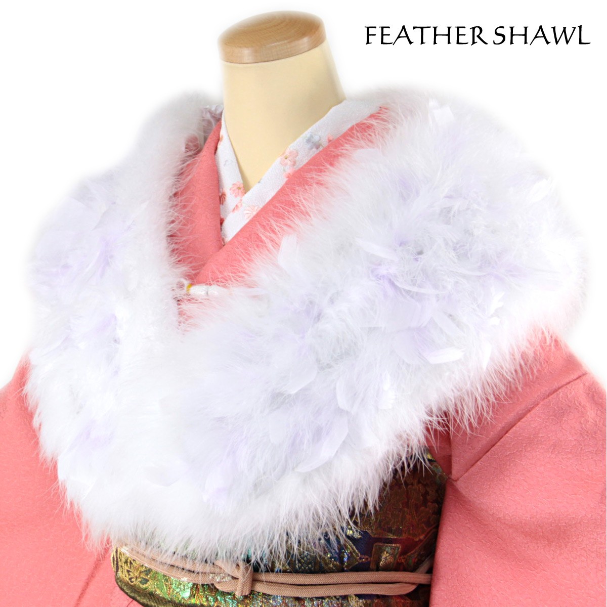 成人式の振袖には欠かす事の出来ない、超定番の羽毛ストールです。
