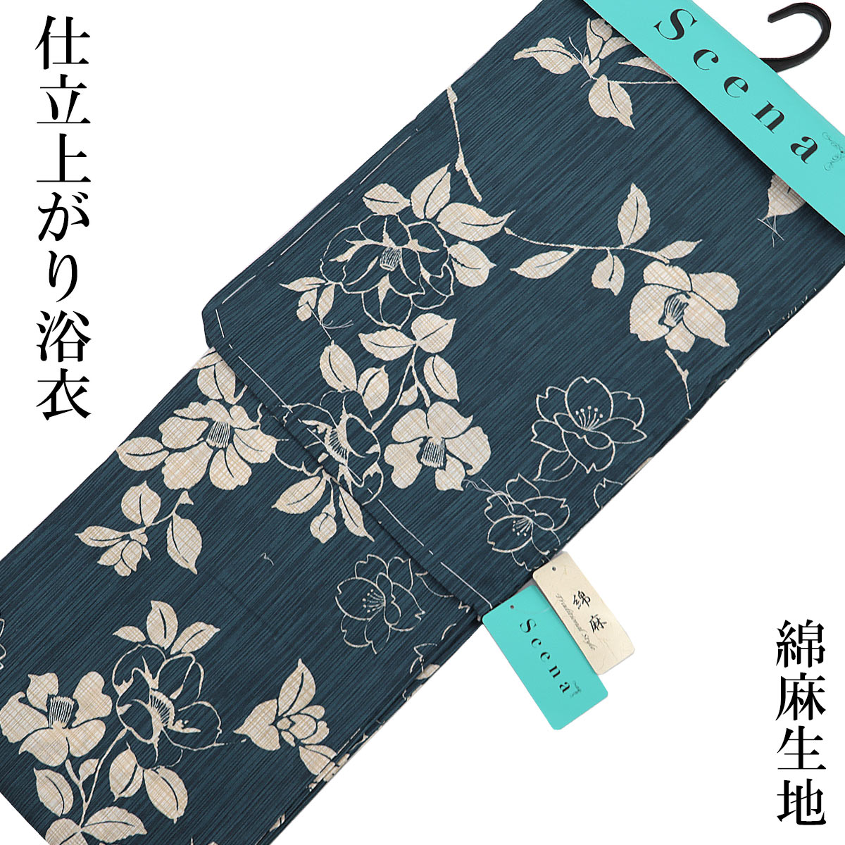 仕立て浴衣 レディース -2B- Scena 綿麻 Free-Size 納戸色/椿