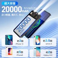 モバイルバッテリー 20000mAh 大容量 軽量 薄型 5台同時充電 小型 PSE 5v/2a スマホ充電器 残量表示 Lightning ケーブル内蔵 iPhone Android 2025