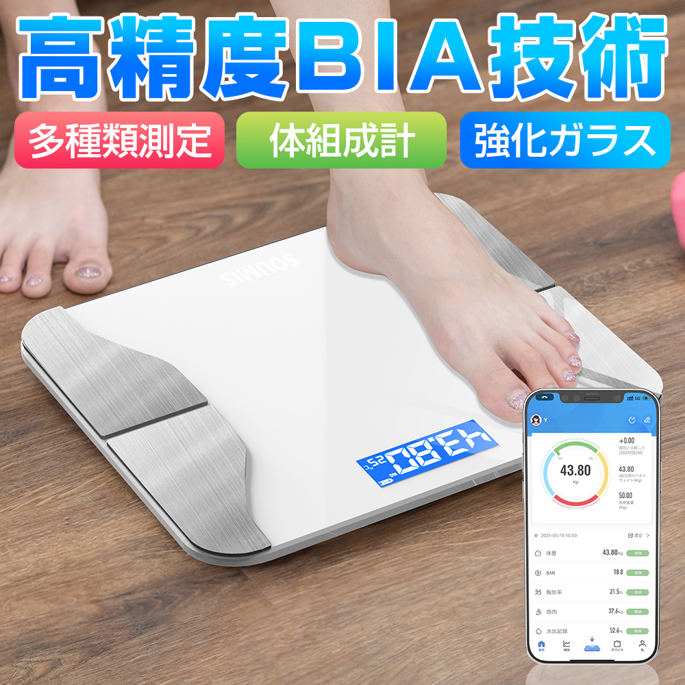 体重計 体組成計 スマホ連動 体脂肪計 高精度 体脂肪率 基礎代謝量 強化ガラス Bluetooth接続 筋肉量 BMI値 体内水分 日本語説明書 iphone Android 対応