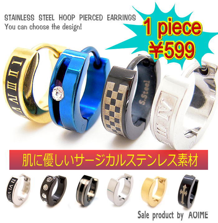 1個売り ステンレス フープ ピアス クリッカー ヒンジ ワンタッチ リングピアス メンズ レディース 金属アレルギー 1-a
