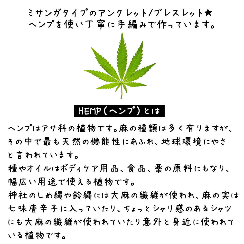 《関連キーワード》メール便 ヘンプ HEMP アンクレットブレスレット 手首 ミサンガ 足首 アクセ サンダル ミュール アクセサリー 夏アクセ
