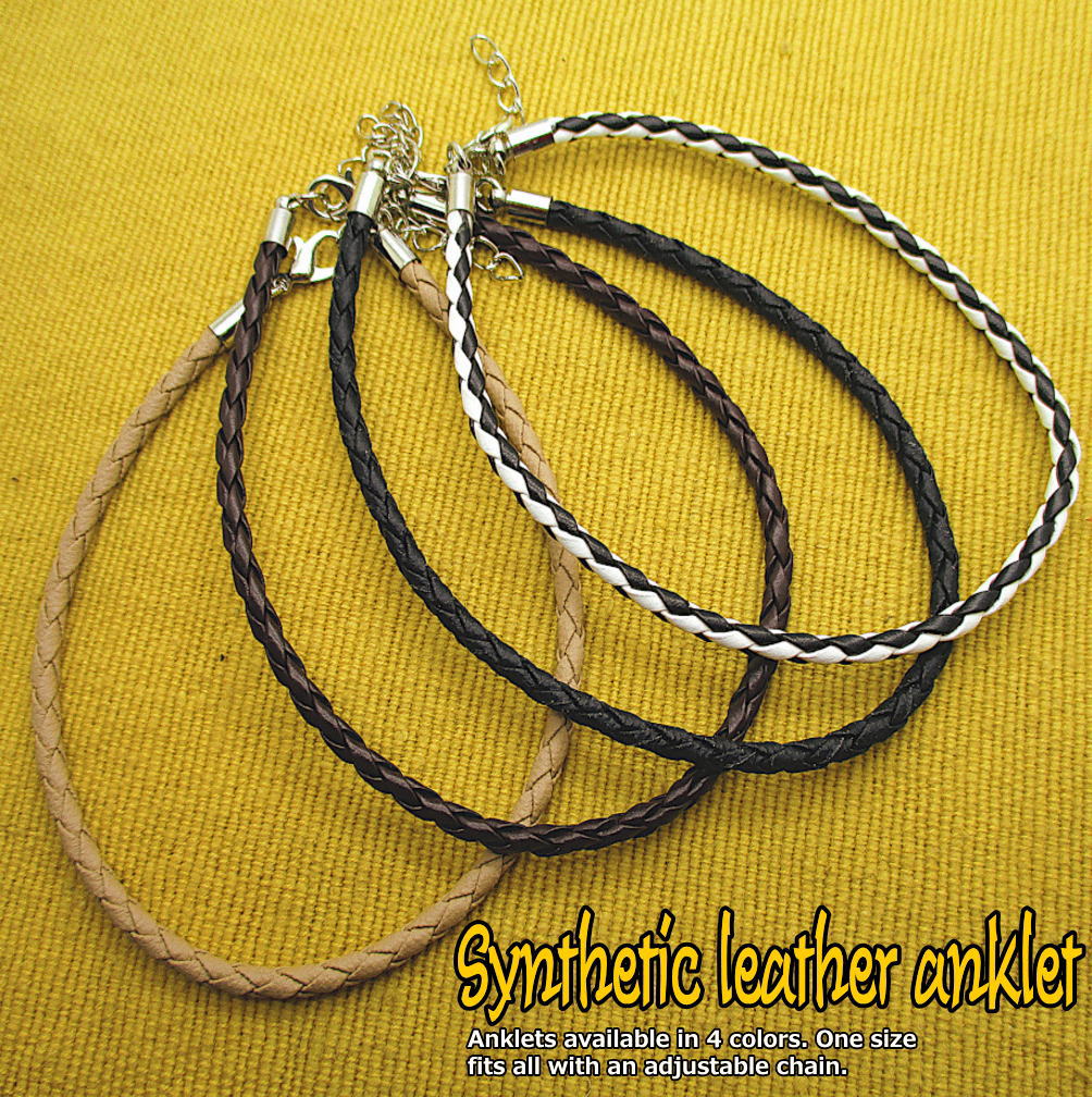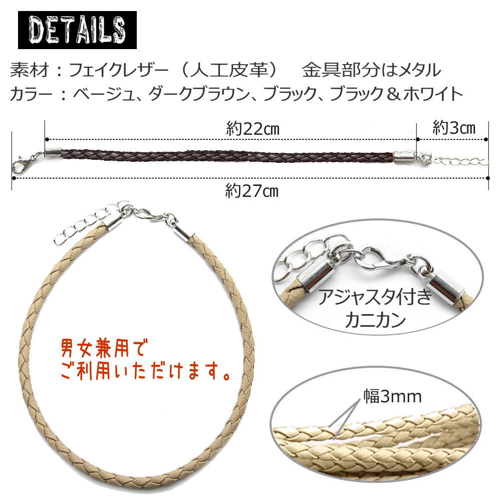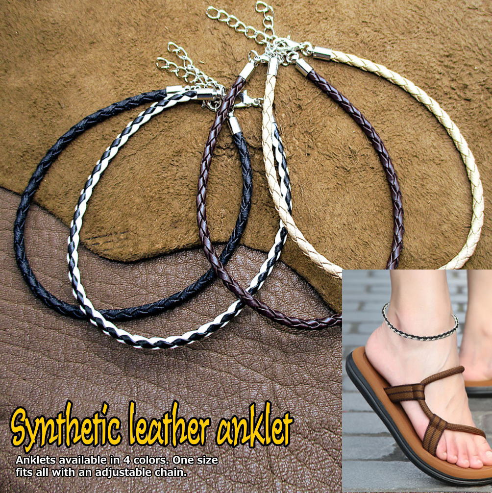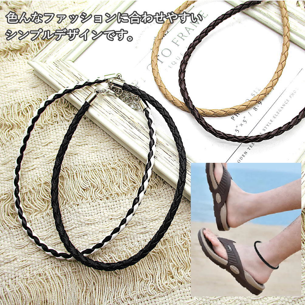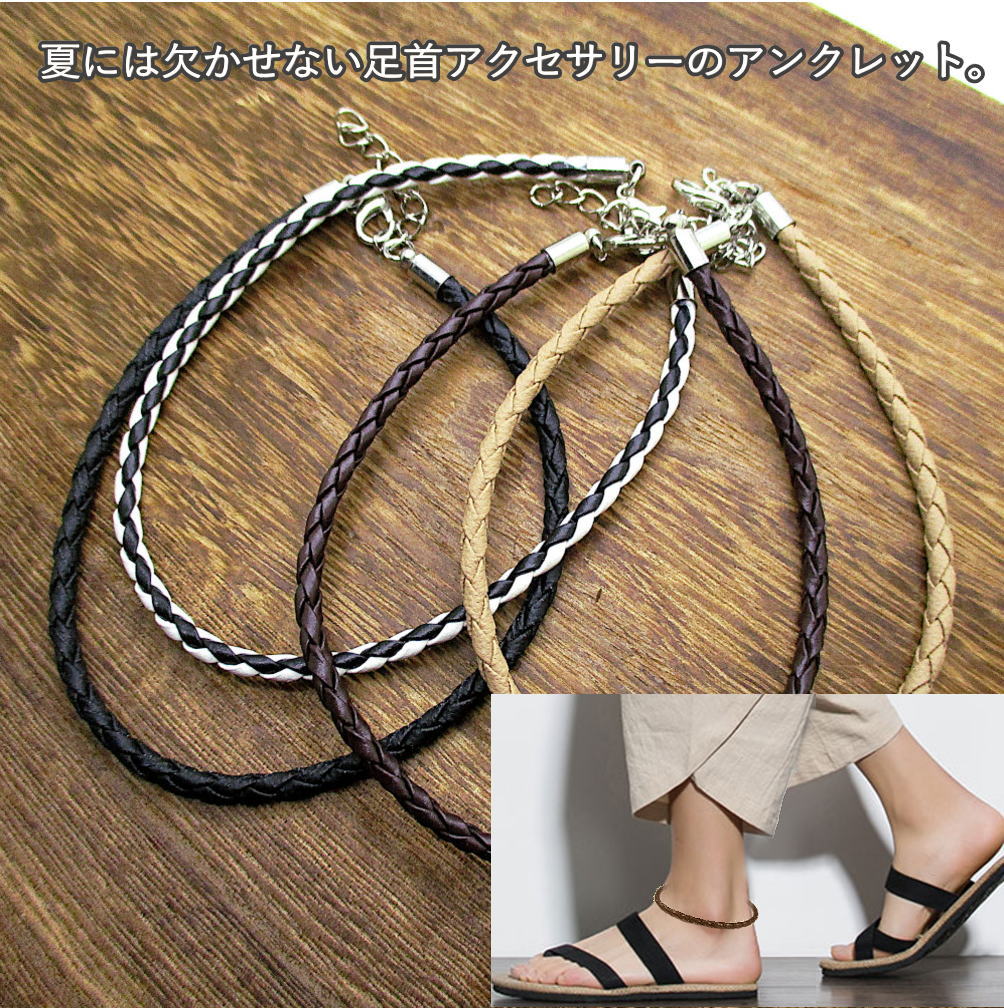 アンクレット フェイクレザー 足首 ユニセックス メンズ レディース フリーサイズ 黒 茶 ベージュ アクセ 3-1002