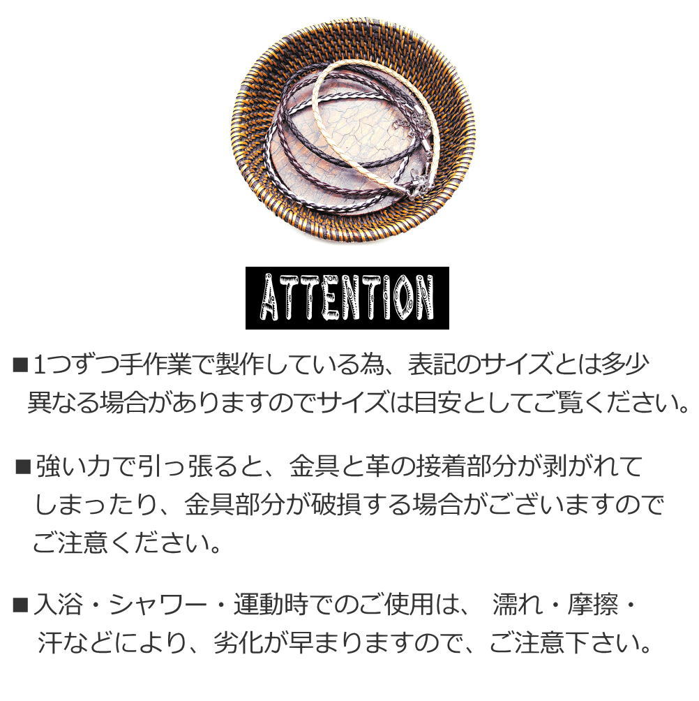 サイズ:メンズ&レディースフリーサイズ 革部分の長さ約22cm 直径約3mm 調節チェーン約3cm 全長27cm