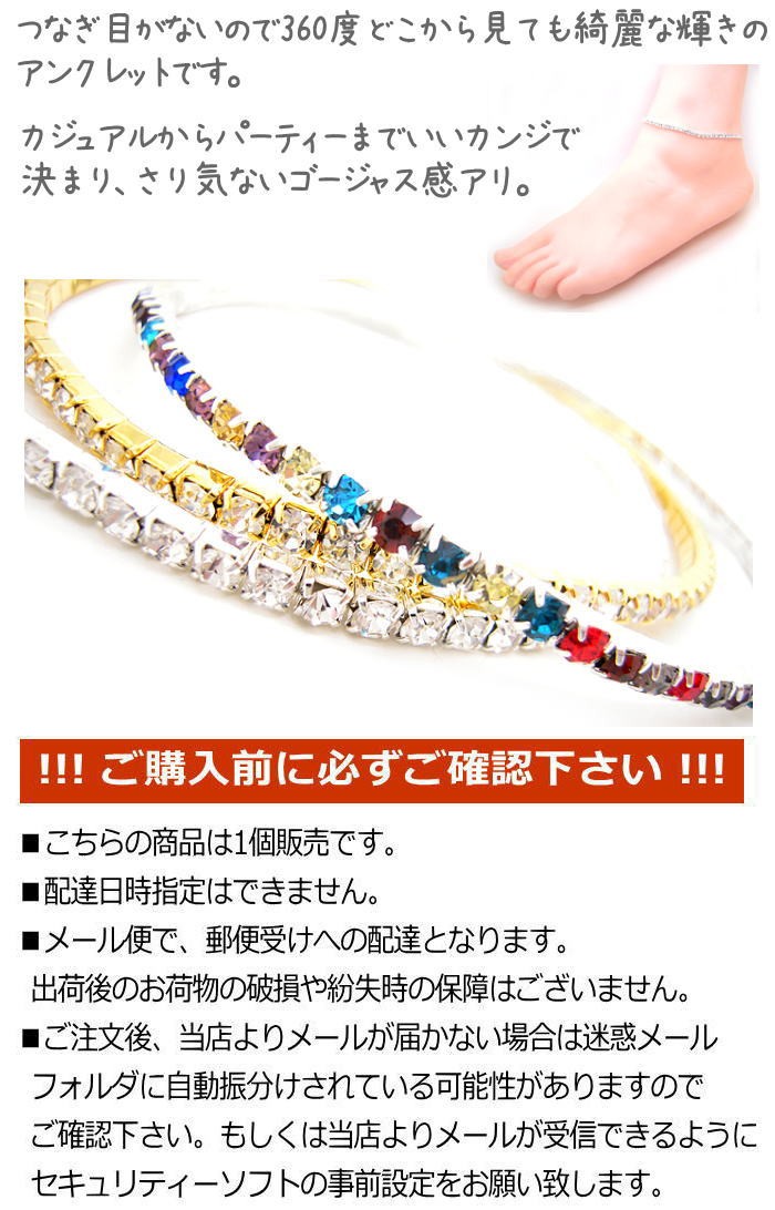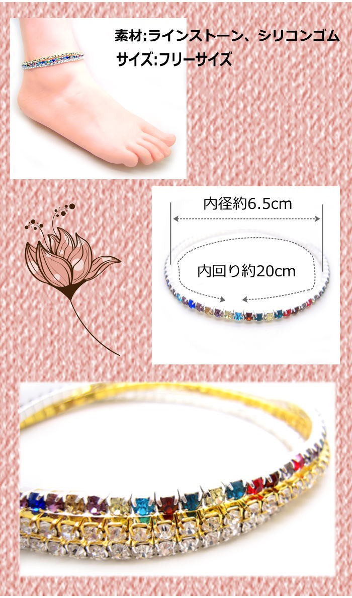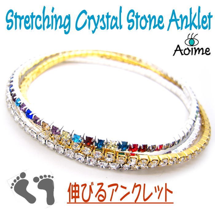 アンクレット ラインストーン 伸びる シリコン ゴム ワンタッチ 足首 クリスタル キラキラ アクセサリー 3-5802
