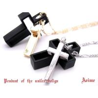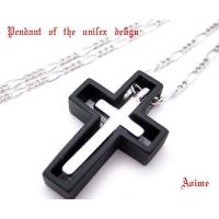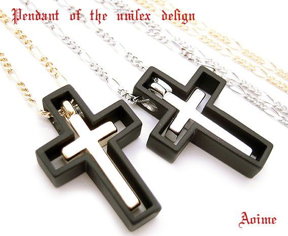 ユニセックスデザインでペアアクセサリーにもオススメです。つや消しブラッククロスの中に一回り小さなクロスのトップ。立体感のあるデザインです。