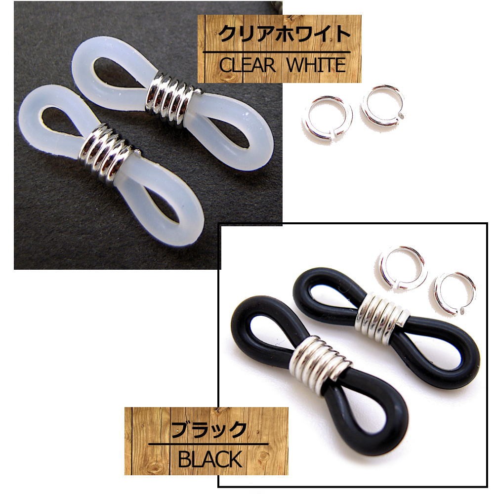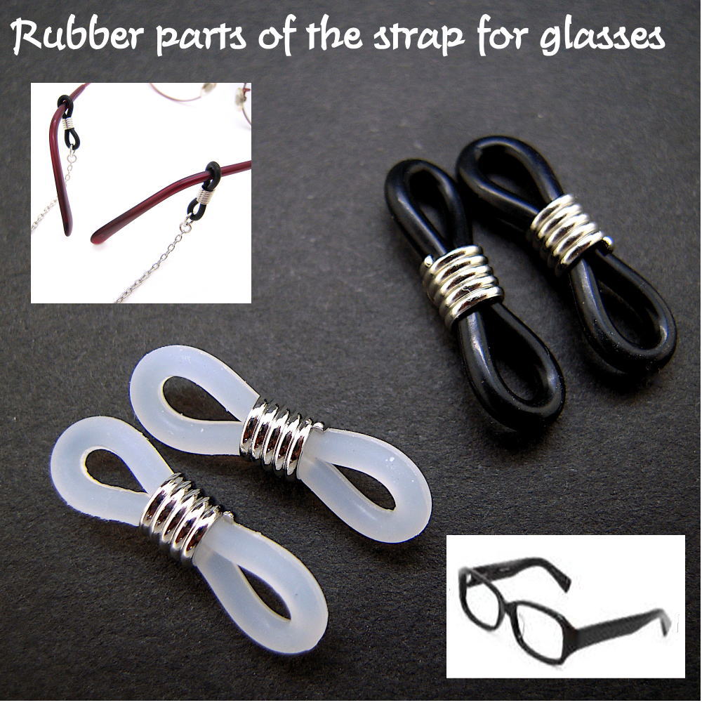 メガネチェーンを眼鏡に取り付けるパーツの2個セット(1ペア)です。 修理用、手作りのパーツなどにお使いいただけます。ゴム部分は摩擦、衝撃、紫外線、経年変化によりどうしても劣化してきます。年に1度の交換をお奨め致します。
