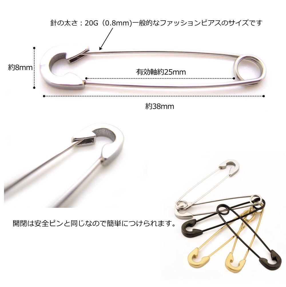 《関連キーワード》安全ピン セーフティーピン ボディピ ピアス アクセサリー ゲージ 20G 20ゲージ ヒップホップ ストリート系 サージカルステンレス316L 有効軸 シャフトイヤーロブ へリックス 軟骨 ピアス 金属アレルギー 金アレ 通販 メール便 アレルギーフリー