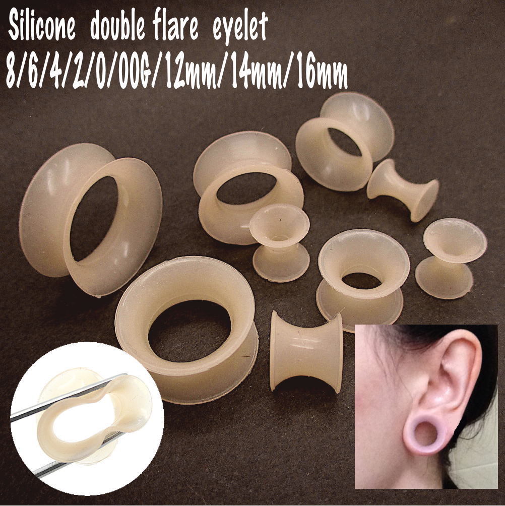 スキンカラー 肌色系 シークレット シリコン ダブルフレア アイレット ボディピアス 軽い 金属アレルギーフリー uv14