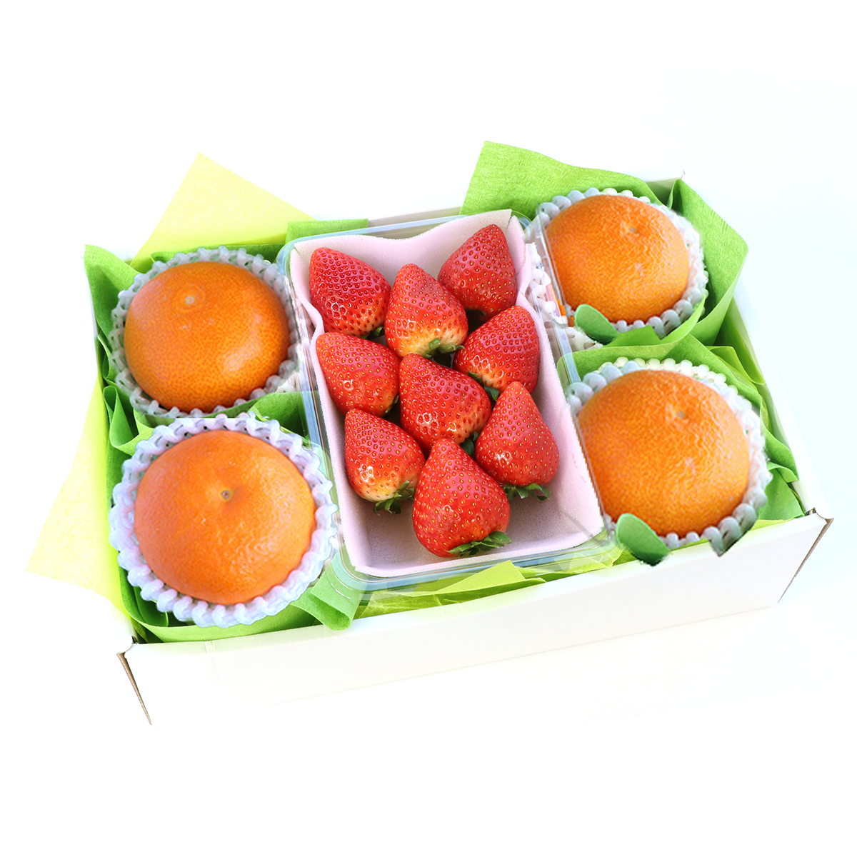 ●内容 おすすめ柑橘 4個 1個あたり 150g前後 /福島県産 いちご 1パック 1パックあたり 200g前後