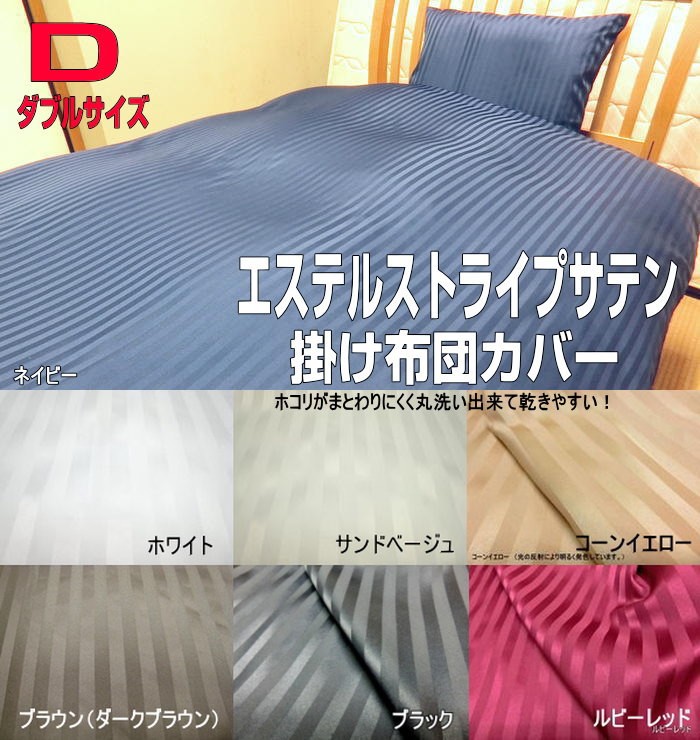掛け布団カバー ダブルロングサイズ 190x210cm エステル・ストライプサテン ポリエステル100% 日本製 ウオッシャブル 速乾性 おすすめ高級カバー