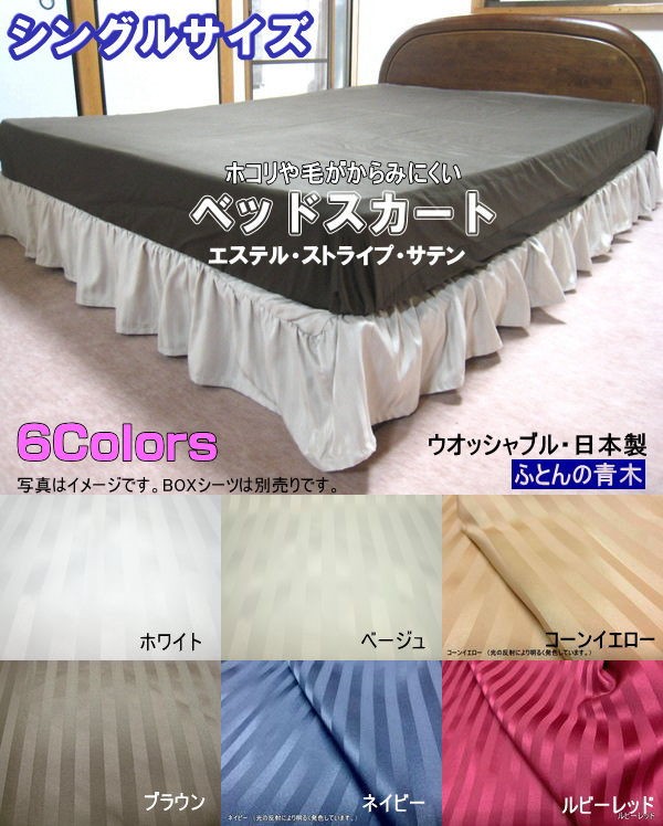 ベッドスカート シングル 100x195/100x200/100x210cm フリルスカート 丈約20〜25cm ポリエステル100% 日本製 エステル・ストライプ・サテン 洗える ハンドメイド