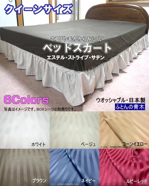ベッドスカート クイーン 160x195/160x200/160x210cm フリルスカート 丈約30/35cm ポリエステル100% 日本製 エステル・ストライプ・サテン 洗える 自社生産品