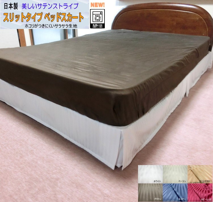 ベッドスカート セミダブル スリットタイプ 120x195/120x200/120x210cm スカート丈約15〜25cm ポリエステル100% 日本製 エステル・ストライプ・サテン 洗える