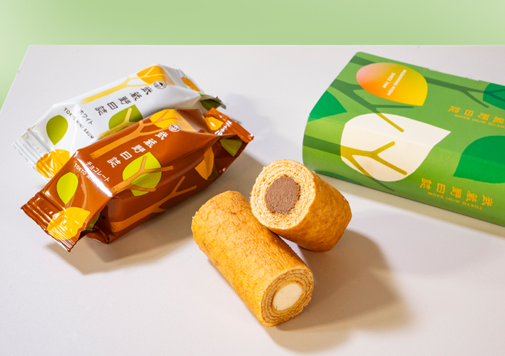 可愛らしいミニバウムクーヘンの中に、こだわりのチョコクリームをぎっしり詰めた和菓子屋が送り出す洋とも和とも言えるバウムクーヘンです。