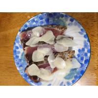 この時期、カツオのたたきにスライスして、ポン酢をぶっかけて食べると何枚でもいけます!
