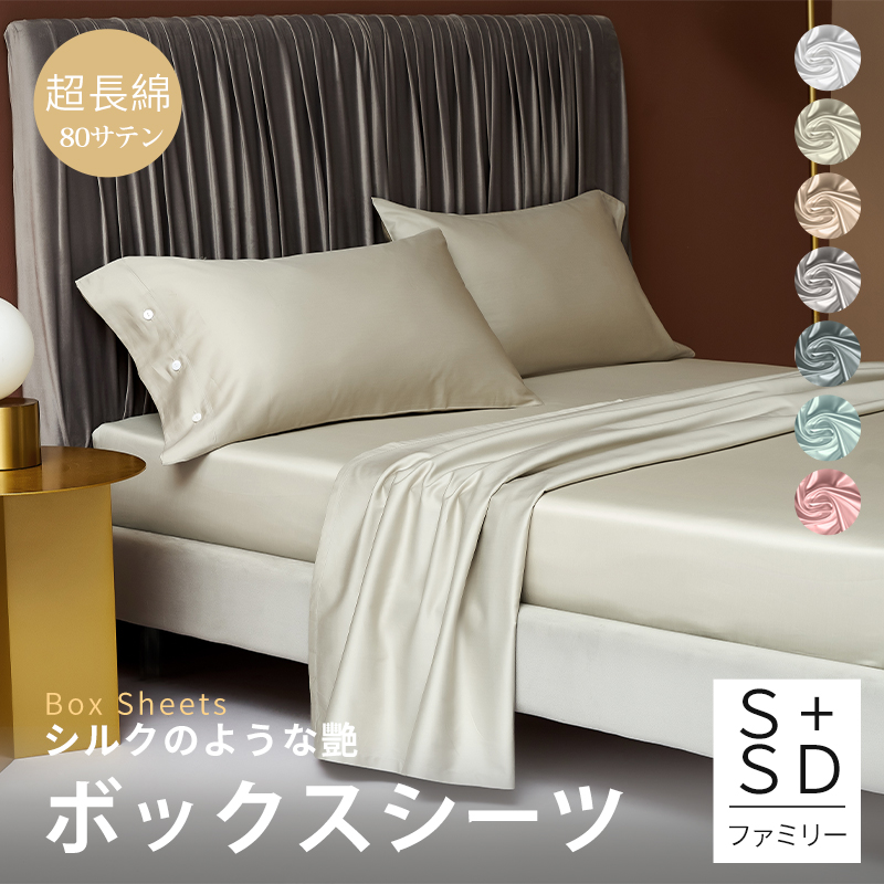 | 最高級超長綿 ボックスシーツ | ・シングル(100x200+30cm) ・セミダブル(120x200+30cm) ・ダブル(140x200+30cm) ・クイーン(160x200+30cm) ・キング(200x200+30cm) ・2台用(220x200+30cm) ・2台用(240x200+30cm) ・2台用(260x200+30cm) ・2台用(280x200+30cm) |
