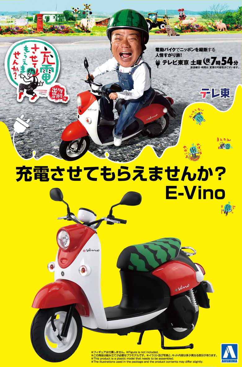 充電バイクでニッポンを縦断する人情すがり旅!「出川哲郎の充電させてもらえませんか?」で活躍するあの電動バイクが1/12スケールのプラモデルで発売となります。