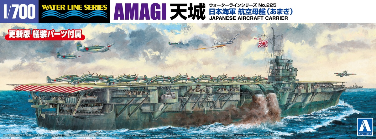 正規空母として建造されるも、戦局の悪化により空母として運用されることのなかった悲運の空母、雲龍型航空母艦2番艦「天城」を1/700スケールのプラスチックモデルキット化。要点を抑えたパーツ構成で、シンプルで組み立て易く、かつ的確に再現できます。3連装機銃、高角砲、など各種艤装を新設計で追加しました。1/700スケールの精密感や緻密さをうまく表現しています。キットには日本海軍後期の艦載機が付属します。