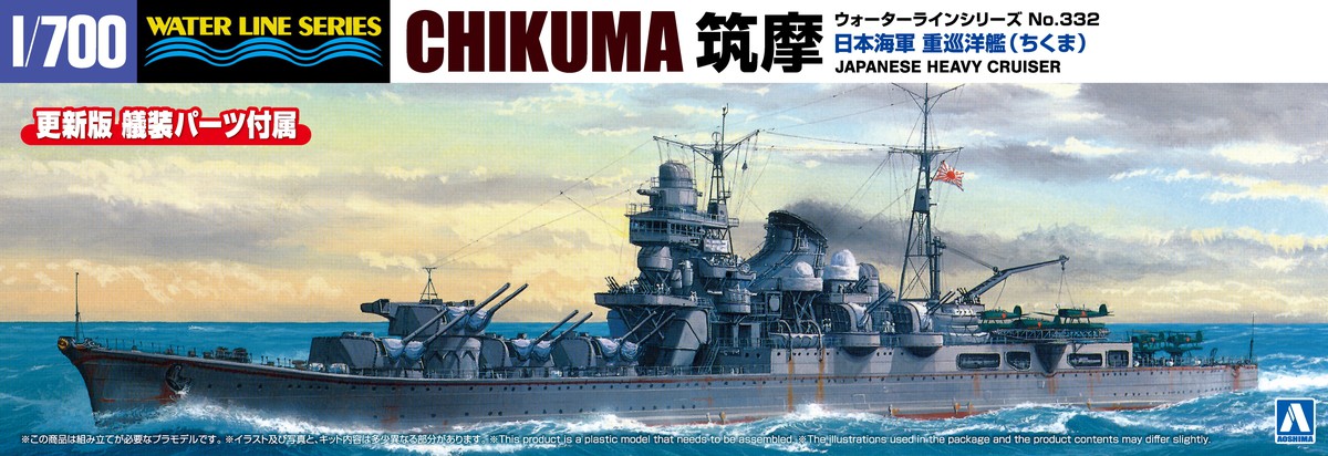 主砲4基8問すべてを前部に集中配置した特徴的な利根型重巡洋艦。その2番艦「筑摩」を対空装備が強化される以前の戦争初期の姿で1/700スケールのプラスチックモデルキット化。要点を抑えたパーツ構成で、シンプルで組み立て易く、かつ的確に再現できます。機銃や高角砲、水上機など各種艤装を新設計で追加しました。1/700スケールの精密感や緻密さをうまく表現しています。
