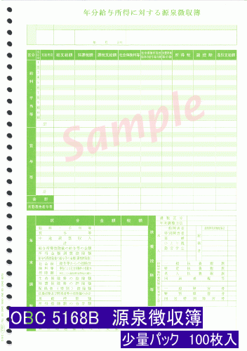 OBC純正 5168 単票 源泉徴収簿 をバラして100枚単位にパッケージした少量パックです。