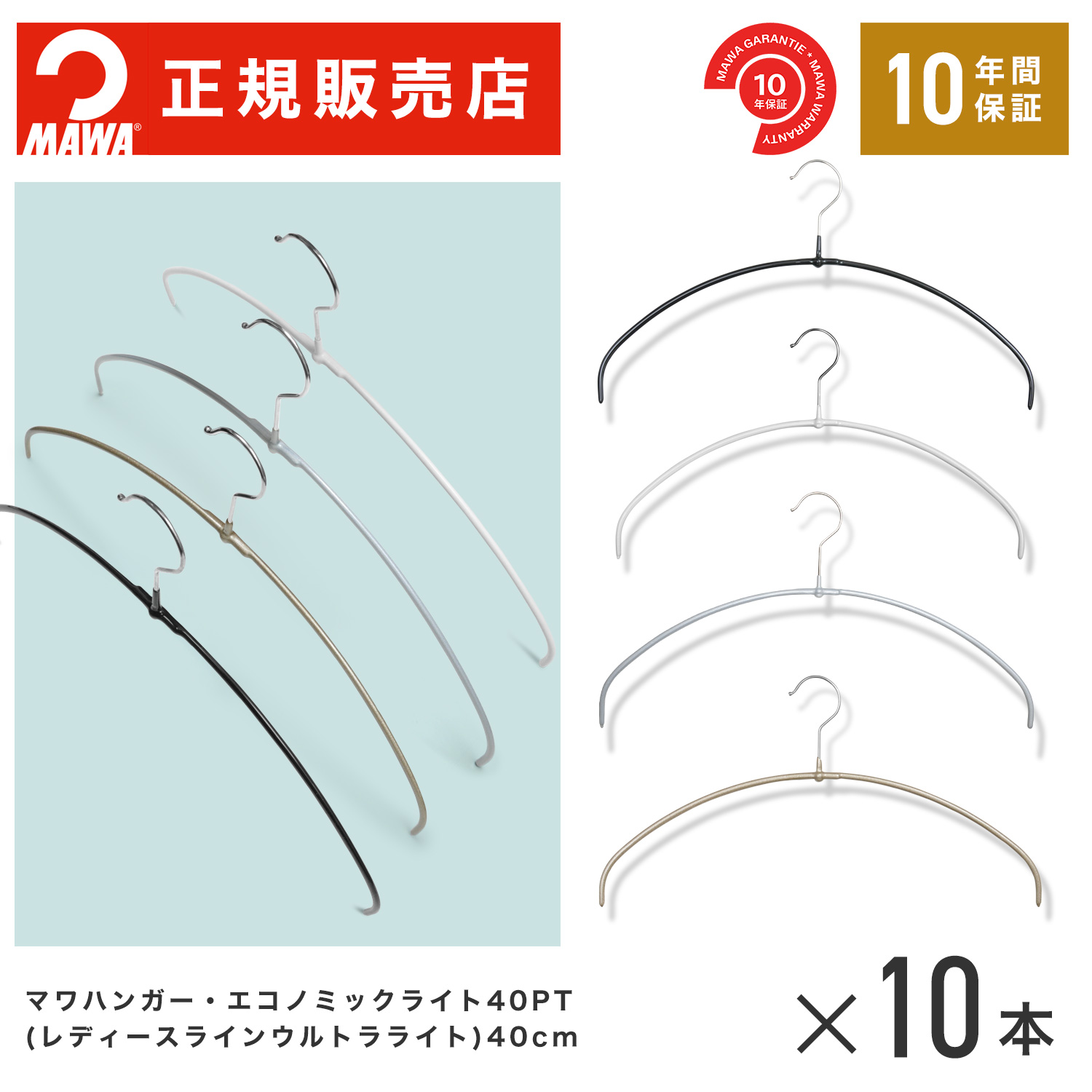 *フックの長さが今回から変わりました。今までエコノミック40pと長さが違いましたが、同じ長さに合わせることができました!ドイツのこだわりメーカーが開発したスリムなくせに機能性の高いノンスリップハンガーです。このハンガーは、全体にノンスリップ加工が施されているため、襟の部分がピタットする位置にかけられられます。なんと今までのレディースラインの半分以下の厚さ4mmのハンガーです!