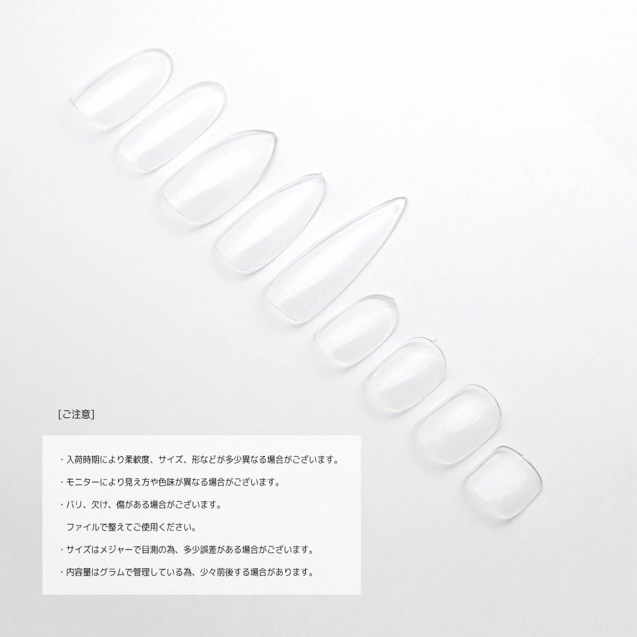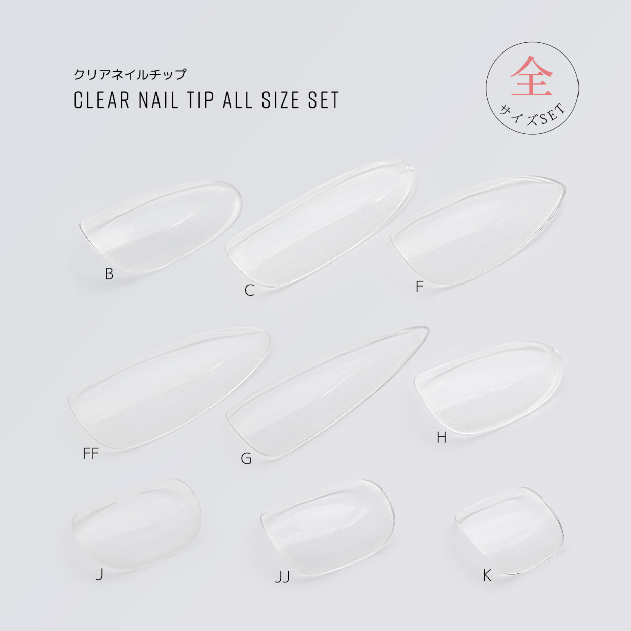クリアネイルチップ 全サイズセット チップ サンプル フルチップ クリアチップ ジェルネイル つけ爪 10サイズ