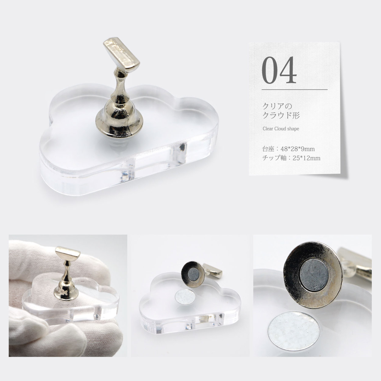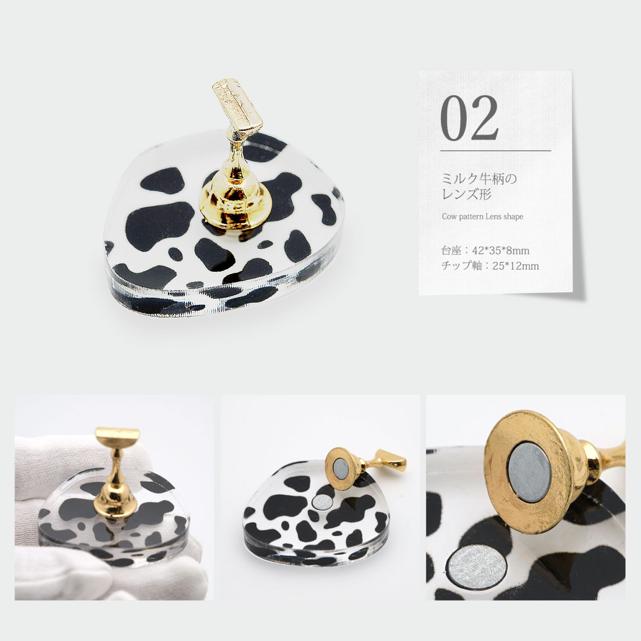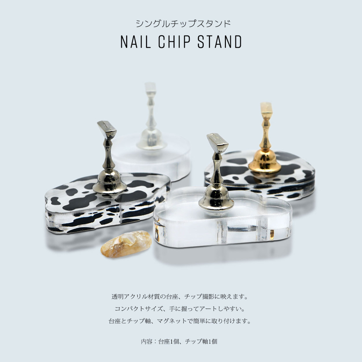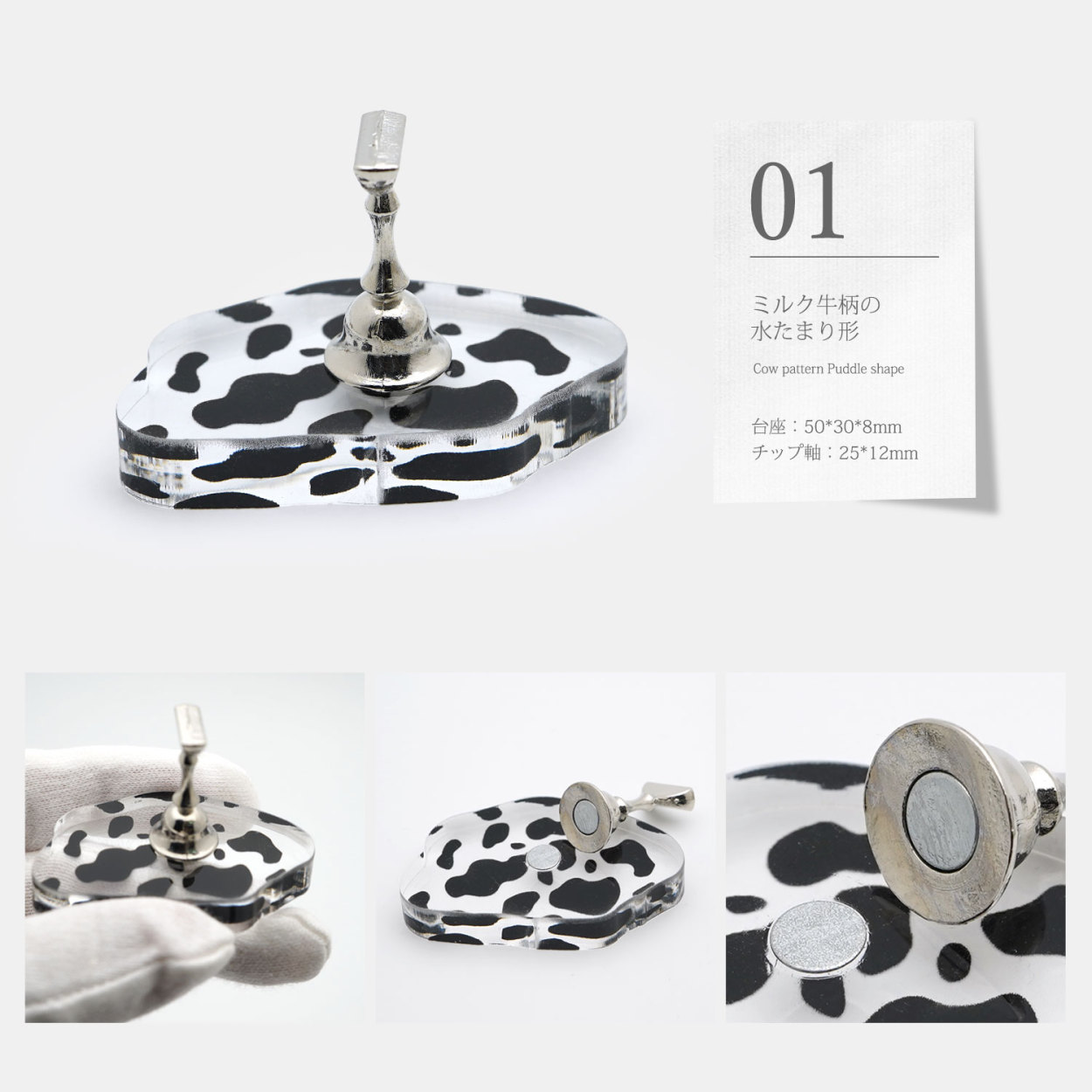 ジェルネイル チップ台 チップスタンド アクリルスタンド ネイルディスプレイ マグネット スタンド ネイルツール クリスタル スタンド ミルク牛柄 水たまり レンズ形 ラウンド クラウド 雲 アオイロ aoyiro PROP