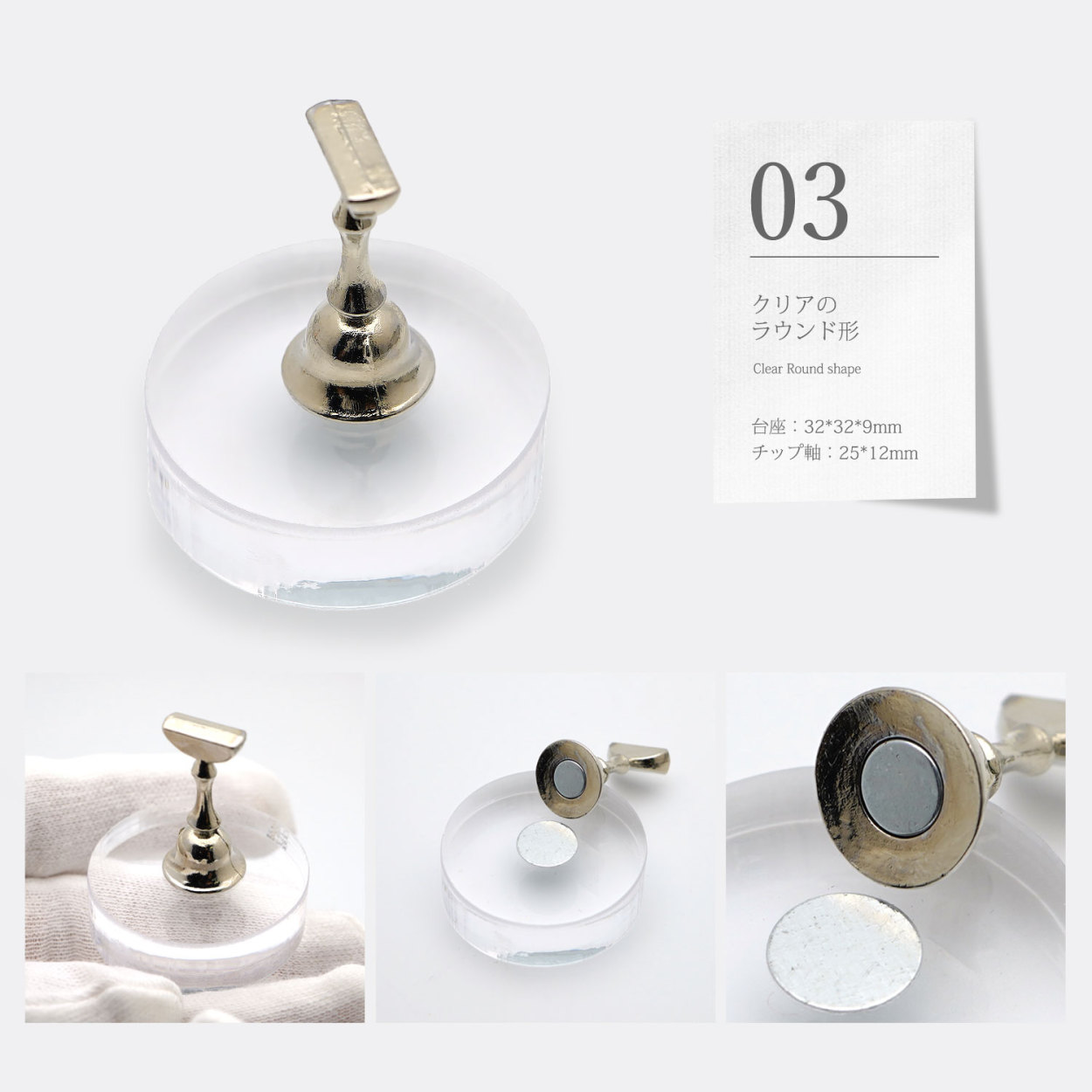 ・透明アクリル材質の台座、チップ撮影に映えます。