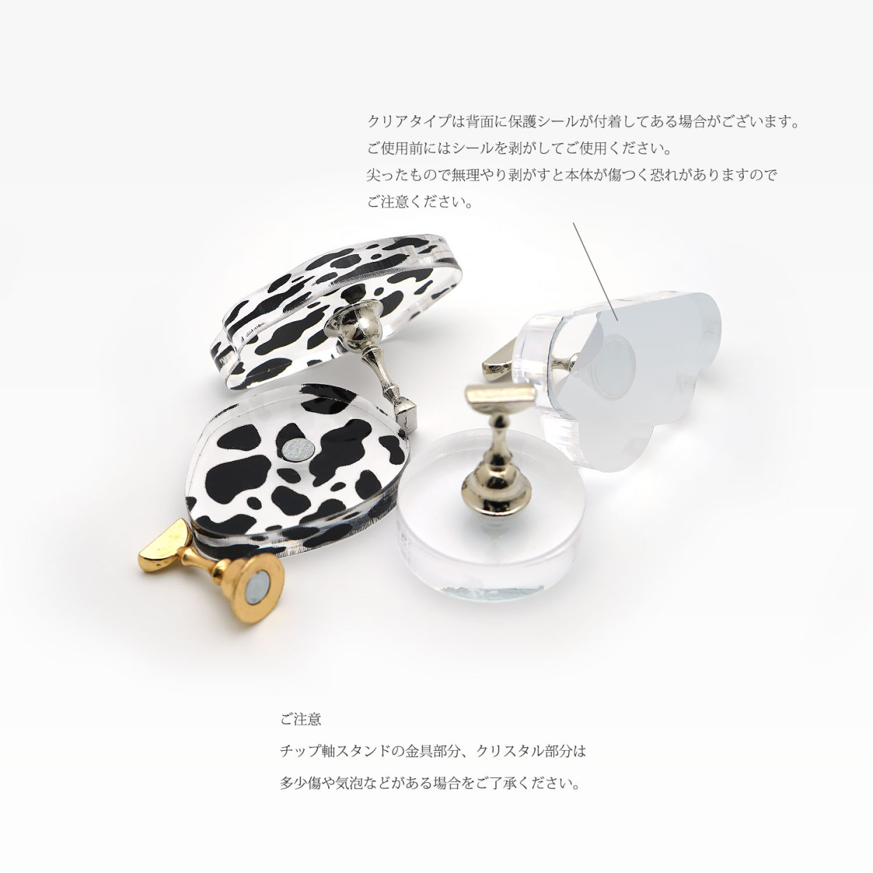 ・チップ軸スタンドの金具部分、クリスタル部分は多少傷や気泡などがある場合がございます。