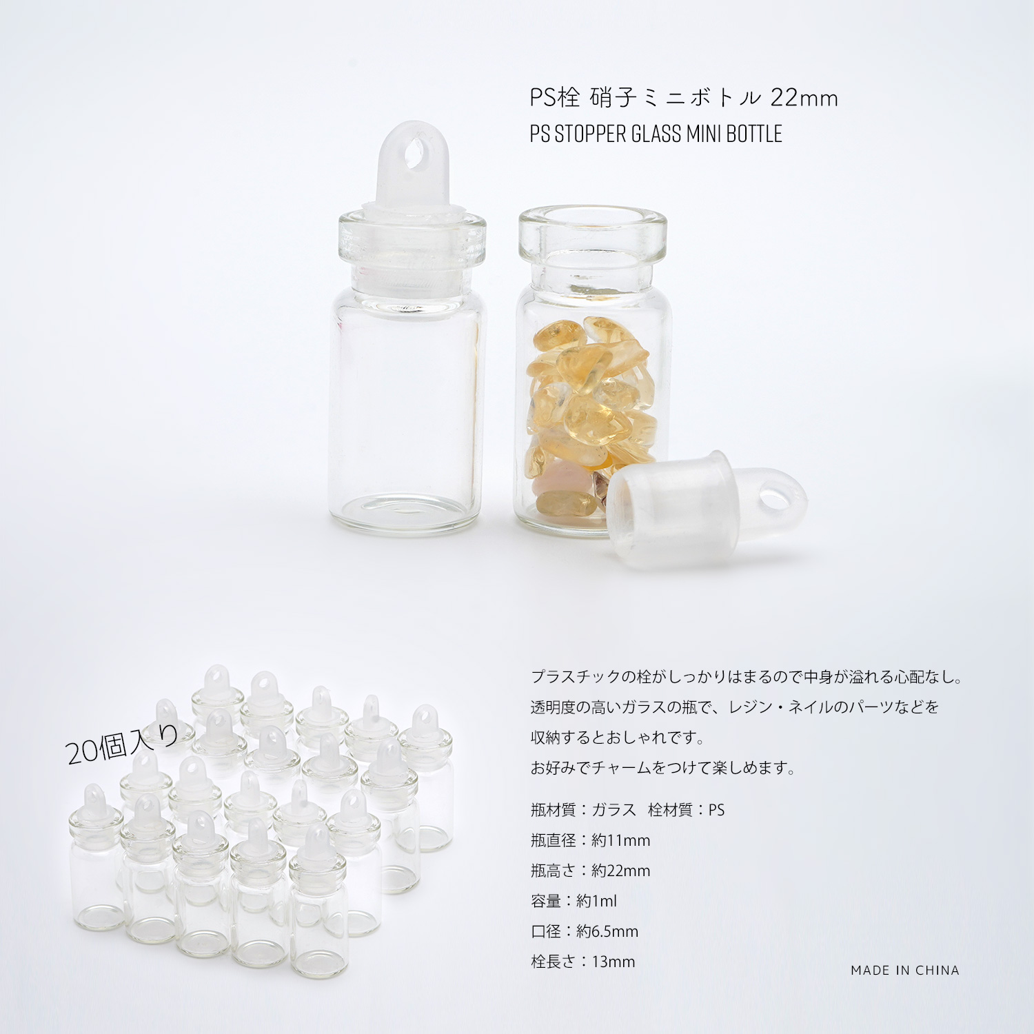 瓶材質:ガラス 栓材質:PS