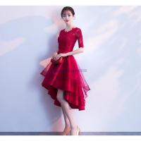 前短後長 レッドウエディングドレス 結婚式 2次会 花嫁 二次会ドレス エンパイア フォーマルドレス ショートドレス ミニドレス ウェディングドレス 格安