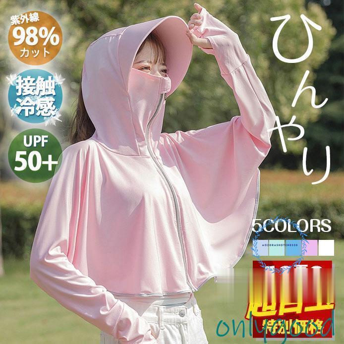 アイスシルク 接触冷感 ラッシュガード レディース UVカットパーカー 体型カバー 長袖 パーカー つば広 夏 トップス 水陸両用 シンプル 薄手 UV対策 春 秋