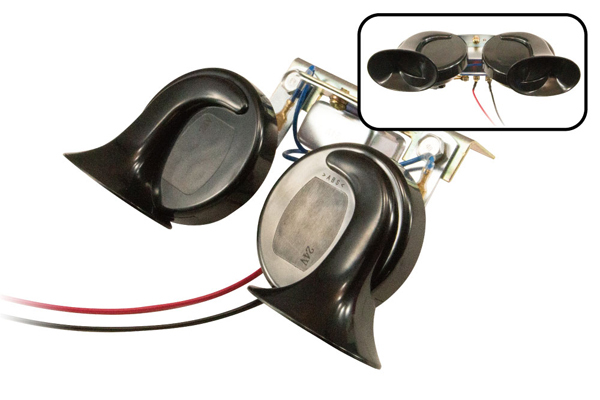 電子ホーンはエアタンク不要で配線処理で簡単取付け。