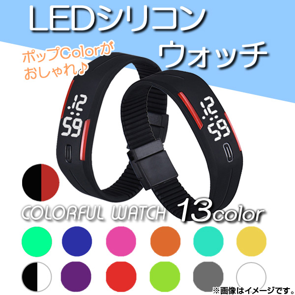 シンプルでポップカラーのLEDデジタルシリコンウォッチ!