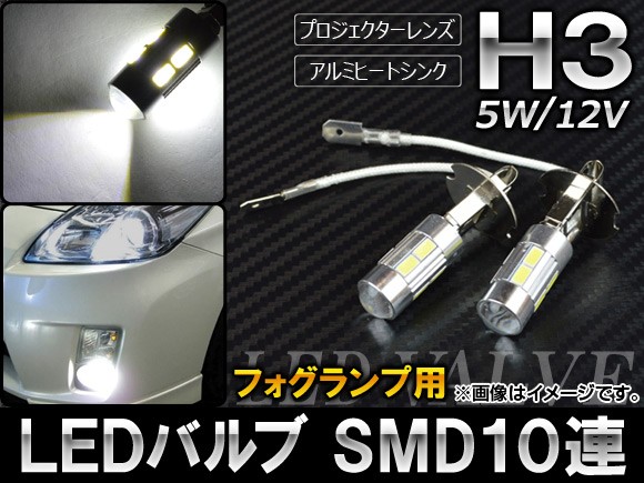 AP LEDバルブ ホワイト H3 SMD10連 フォグランプ用 5W 12V AP-H3-SMD10-WH 入数:2個
