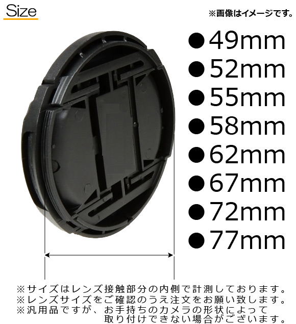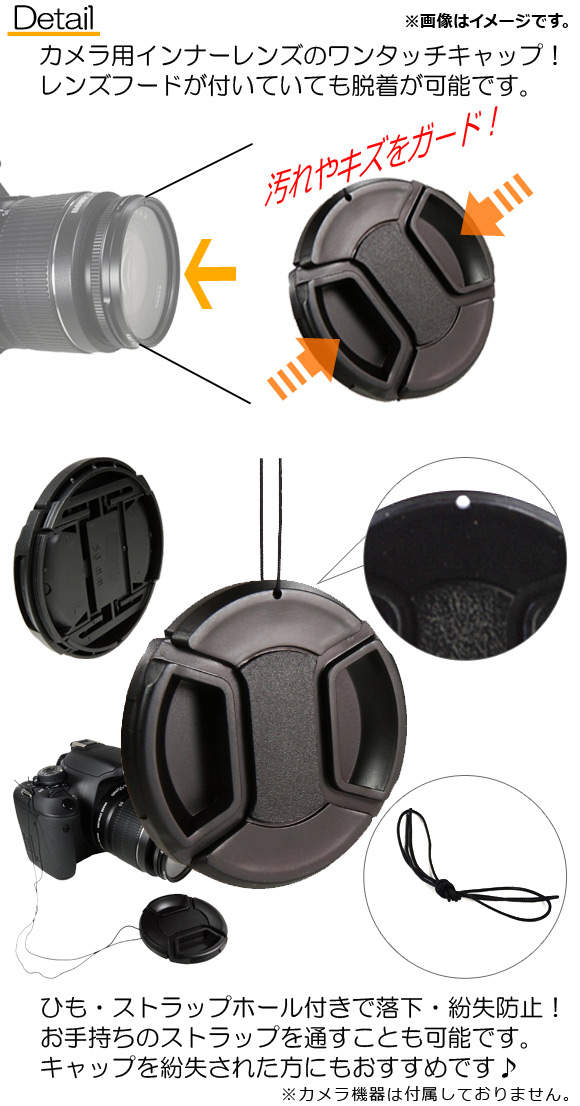 カメラレンズキャップ 49mm AP-TH211-49 52mm AP-TH211-52 55mm AP-TH211-55 58mm AP-TH211-58 62mm AP-TH211-62 67mm AP-TH211-67 72mm AP-TH211-72 77mm AP-TH211-77 在庫 4562430511908 4562430511915 4562430511922 4562430511939 4562430511946 4562430511953 4562430511960 4562430511977 カメラキャップ レンズキャップ キャップ カメラ レンズ レンズカバー カバー ガード 一眼レンズ 一眼レフ 一眼 デジカメ デジタルカメラ インナー式 インナータイプ インナー ワンタッチ 汎用タイプ 落下防止 紛失防止 ひも付き 紐付き ストラップ ストラップホール ストラップ穴 キャノン パナソニック ニコン ソニー オリンパス リコー 富士フィルム ペンタックス タムロン ビクター カメラアクセサリー カメラグッズ サイズ: 49MM 49ミリメートル 52MM 52ミリメートル 55MM 55ミリメートル 58MM 58ミリメートル 62MM 62ミリメートル 67MM 67ミリメートル 72MM 72ミリメートル 77MM 77ミリメートル