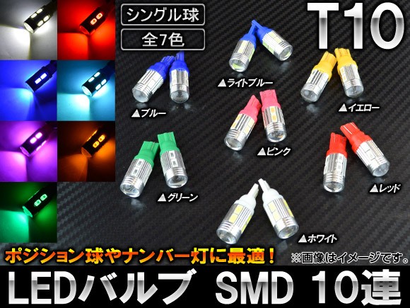 AP LEDバルブ T10 SMD 10連 選べる7カラー AP-SINA-LED022 入数:2個