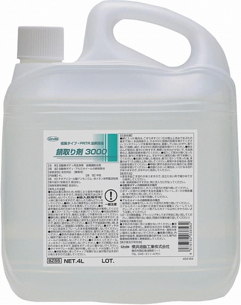 錆取り剤3000 横浜油脂工業(Linda) BZ55 3856 サビ取り剤 錆落とし サビ落とし 錆おとし サビおとし 鉄 ステンレス アルミ ボディ 鉄粉除去 4リットル 4000cc 横浜油脂 リンダ 化学製品 作業用品 車輌整備用品 洗車用品 工場用品 工業用品 オフィス住設用品 清掃用品 洗浄 洗剤 洗浄剤 クリーナー ケミカル用品 カーケミカル 油汚れ 油脂 4979782038562
